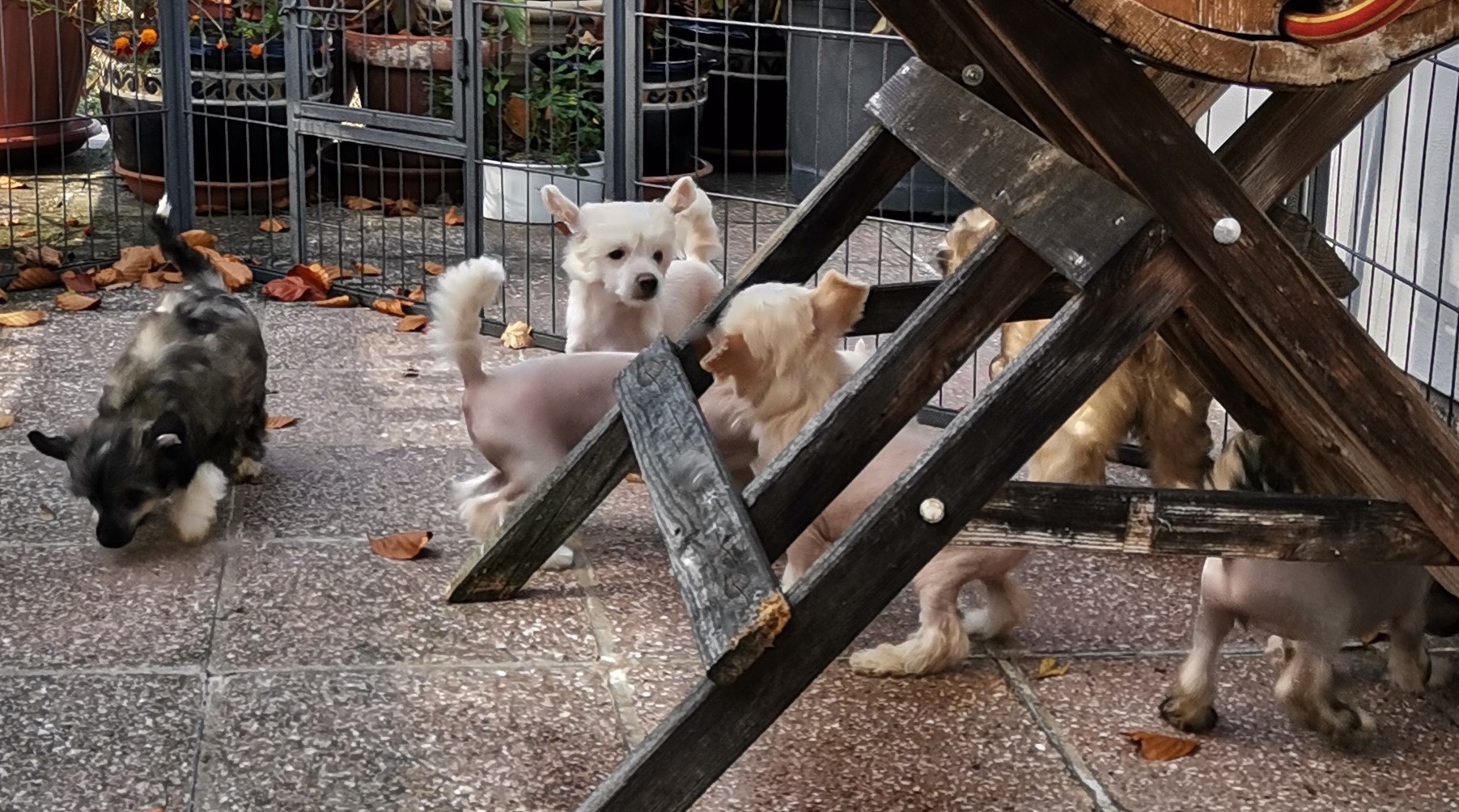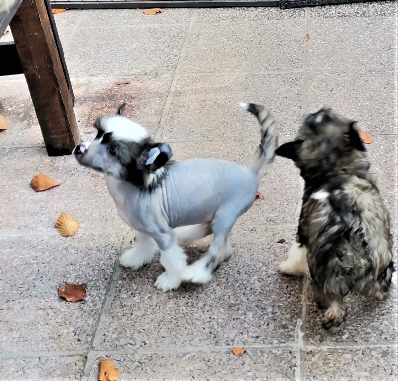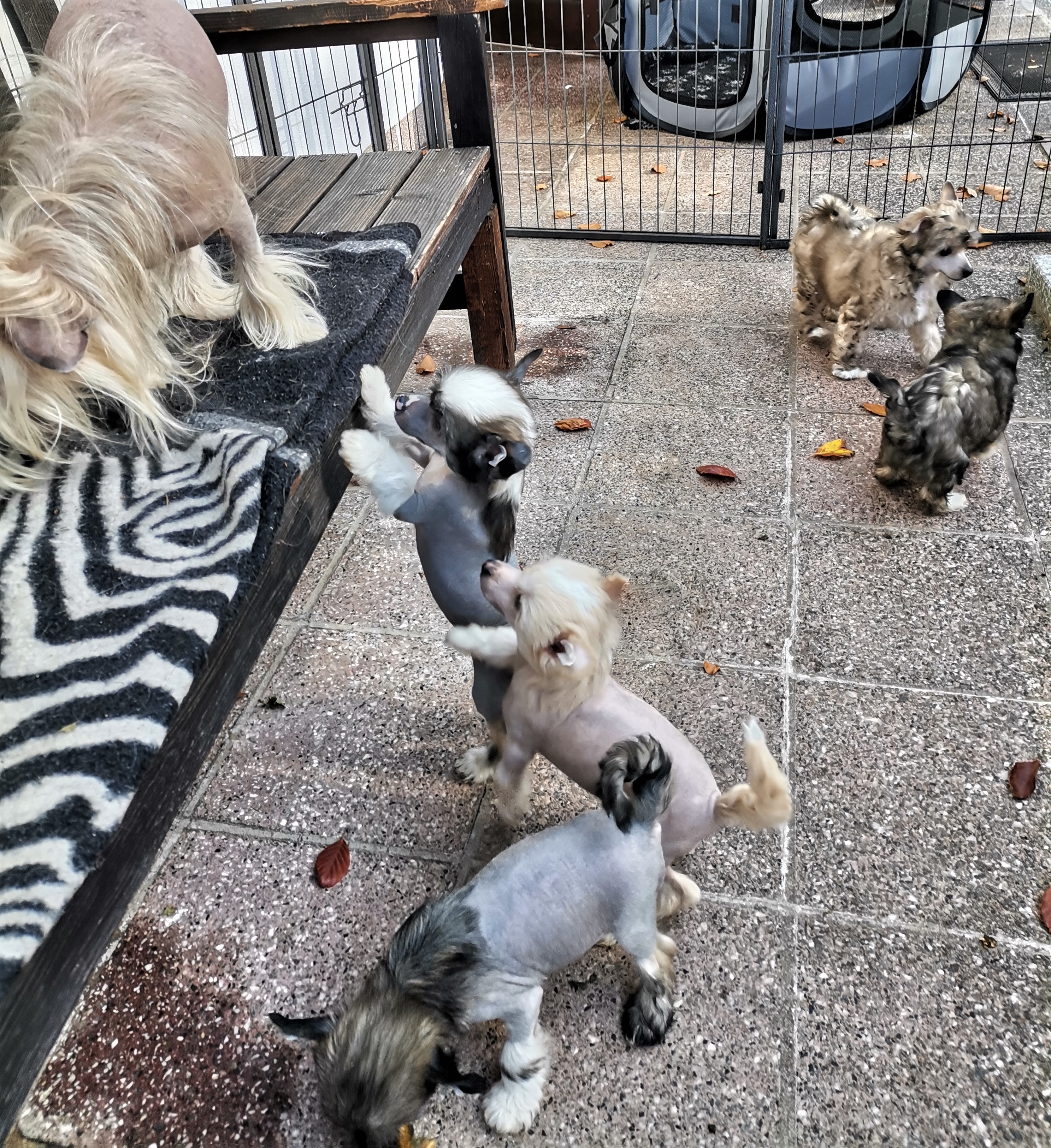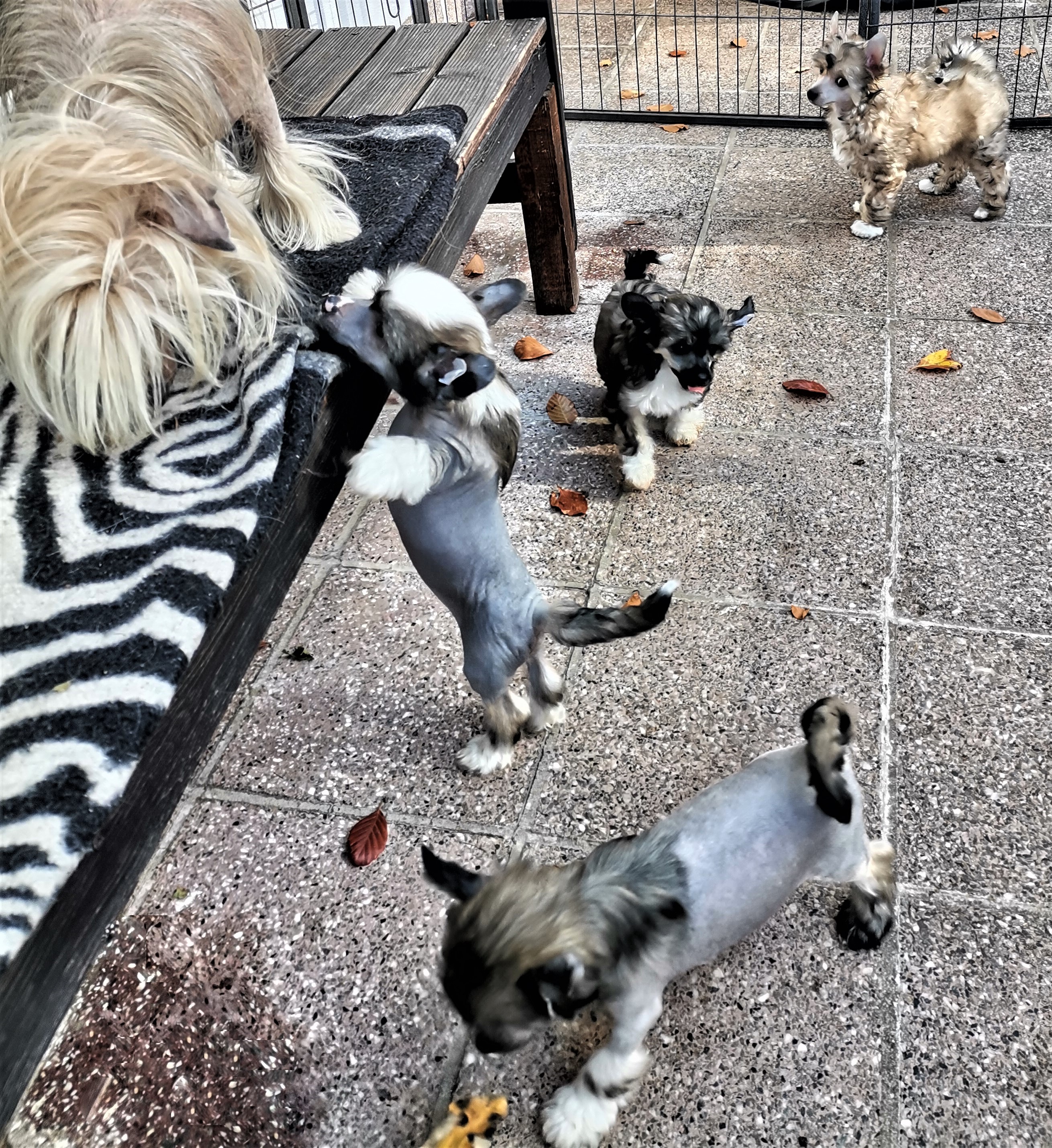 Bei einem kurzen Ausflug die letzten herbstlichen Sonnenstrahlen auf der Terrasse genießen. Die Kleinen aus dem B-Wurf sind auch dabei.