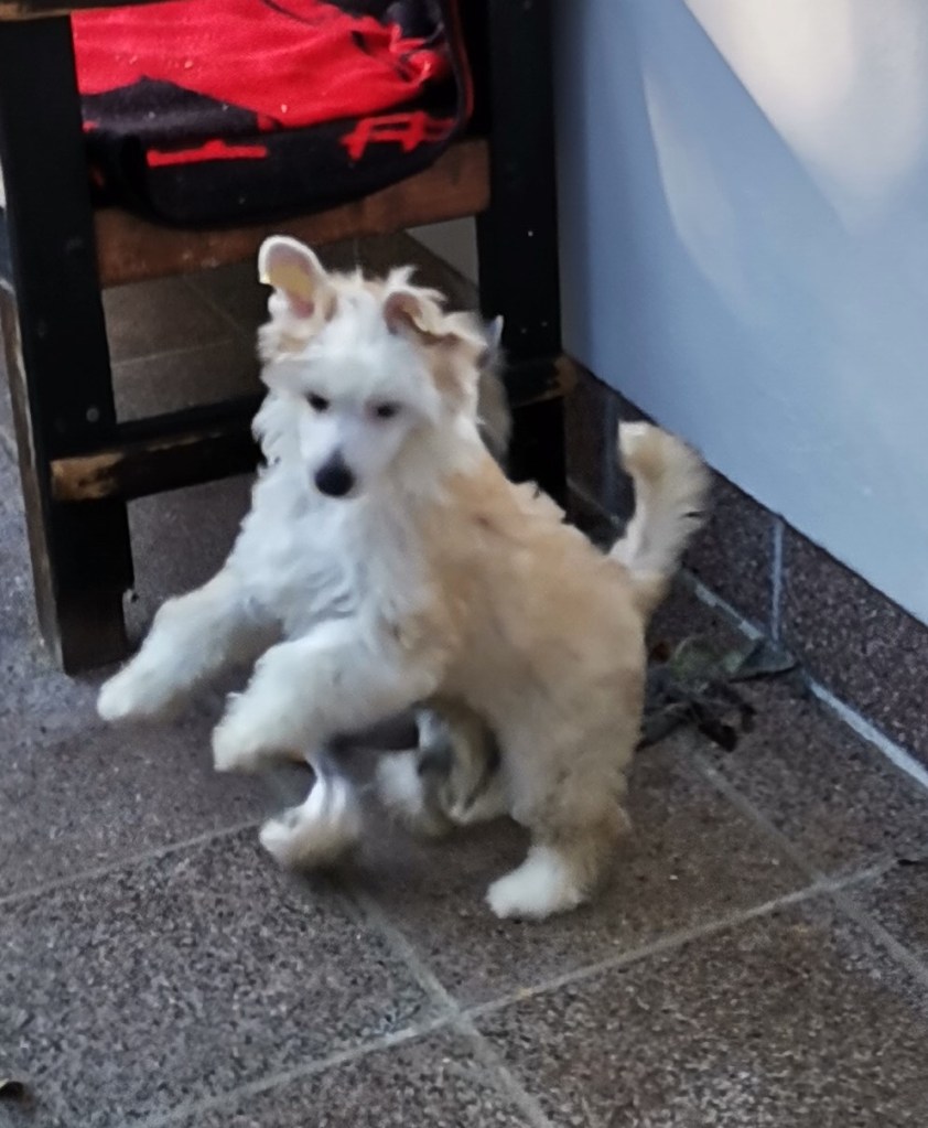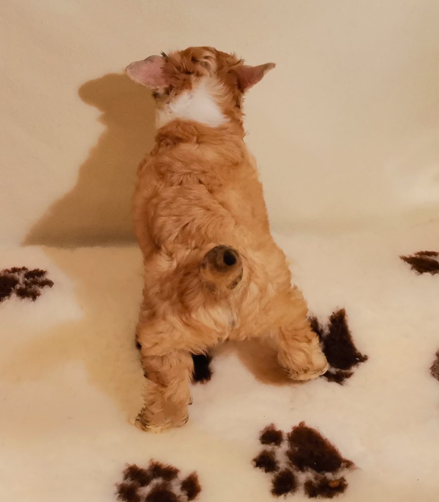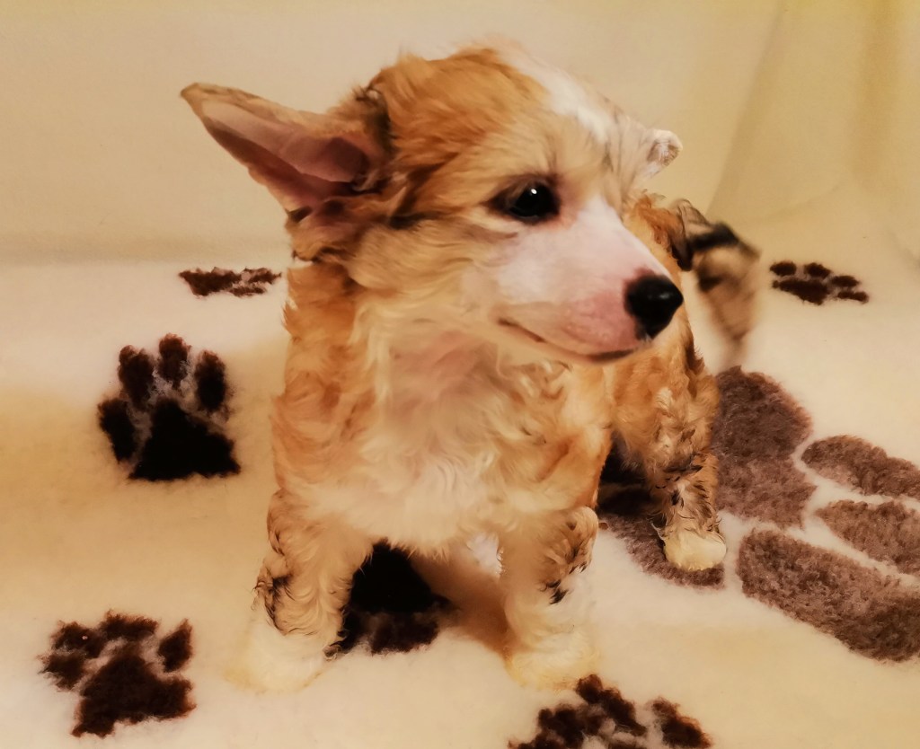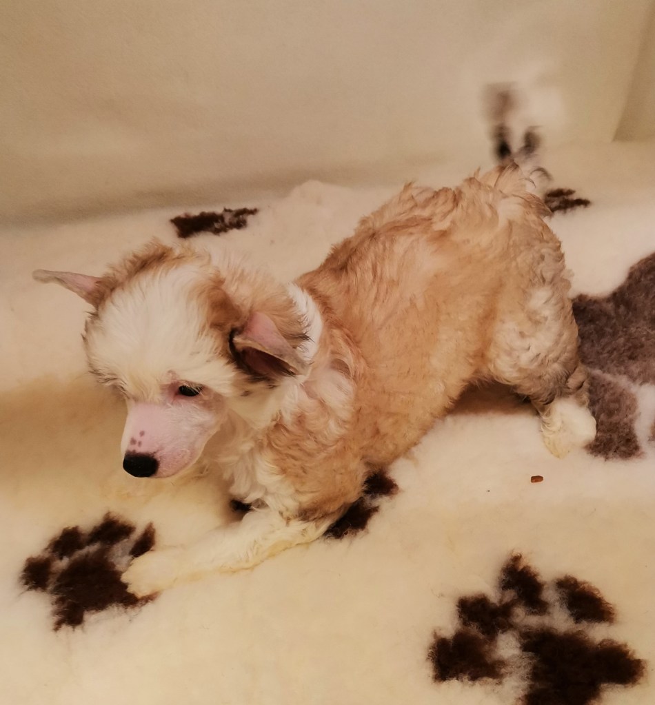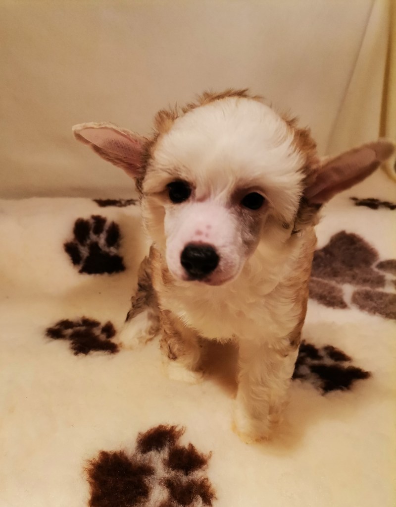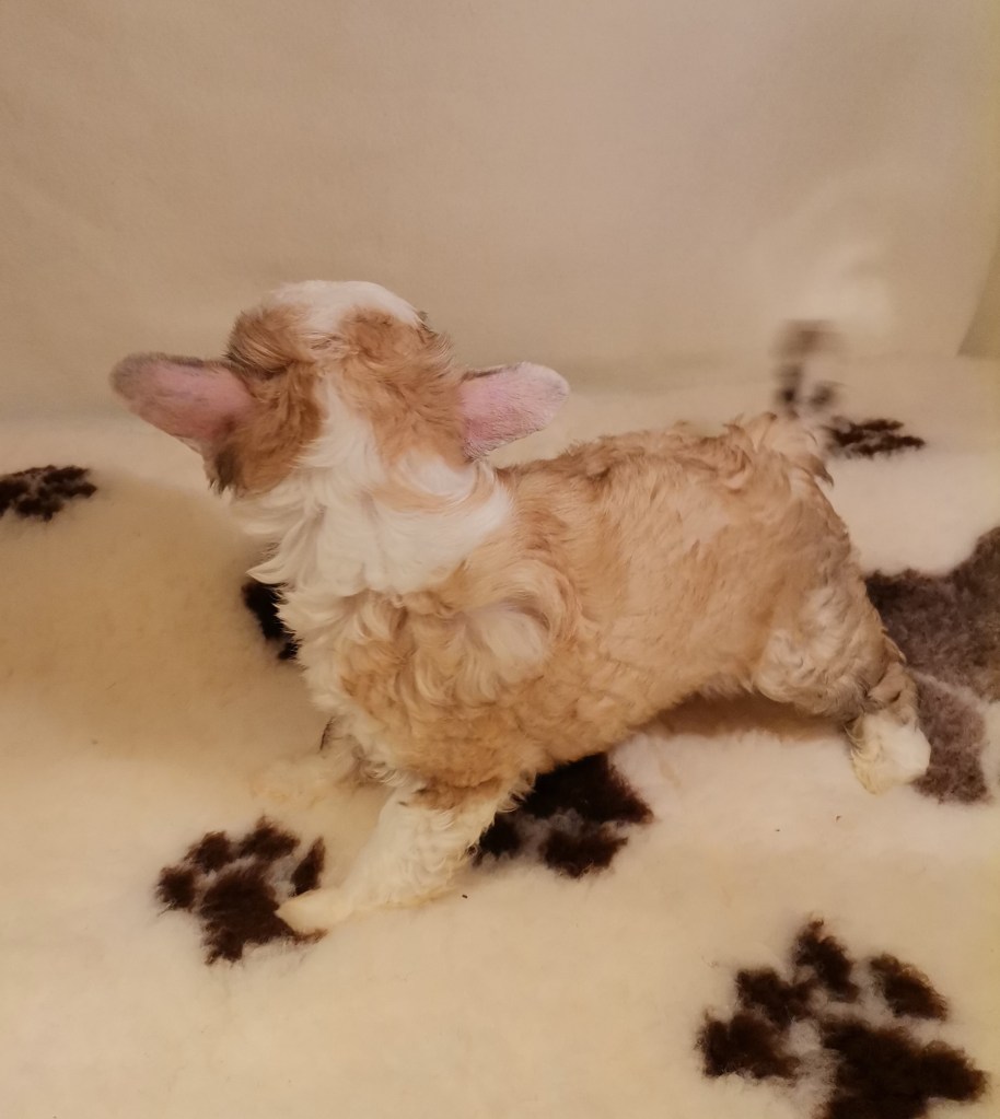 1. FINDUS kleiner Lord vom Bergschlösschen – Rüde Powderpuff Farbe: tan-weiß