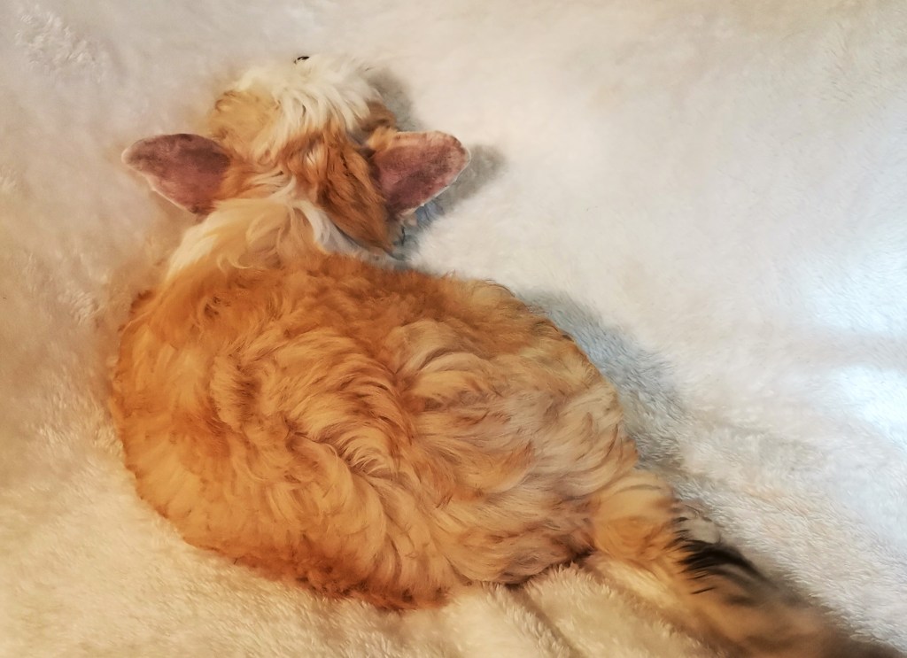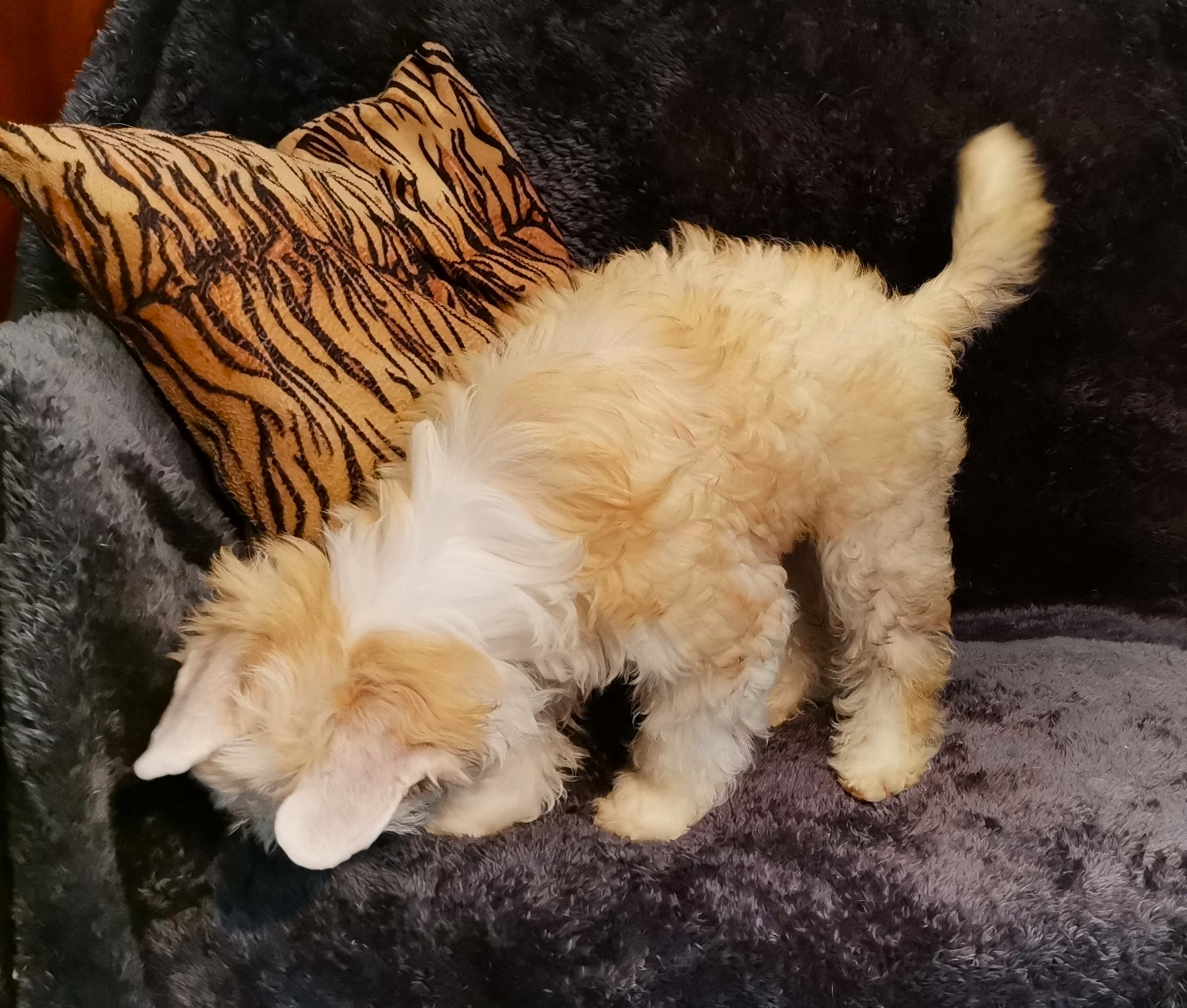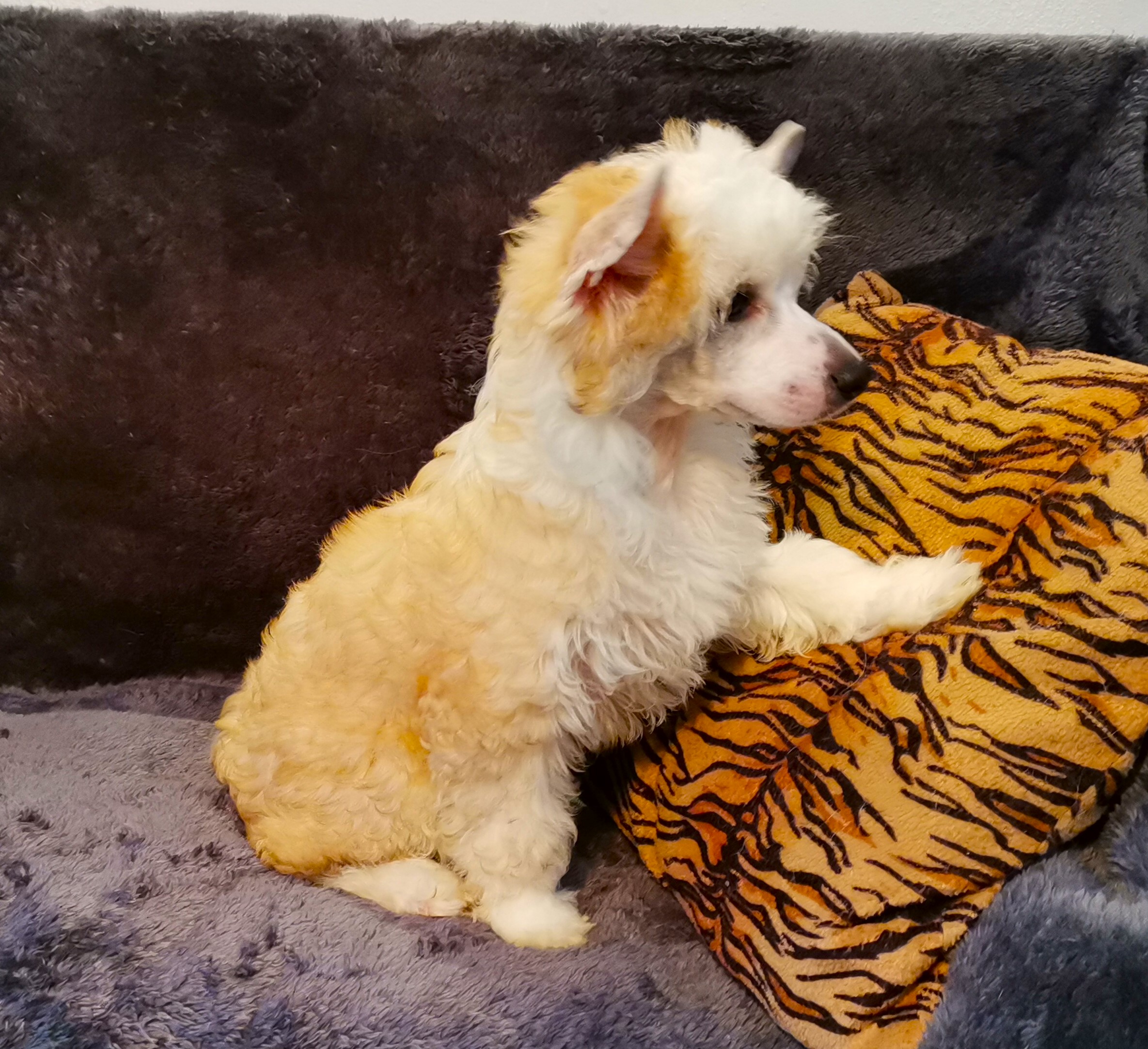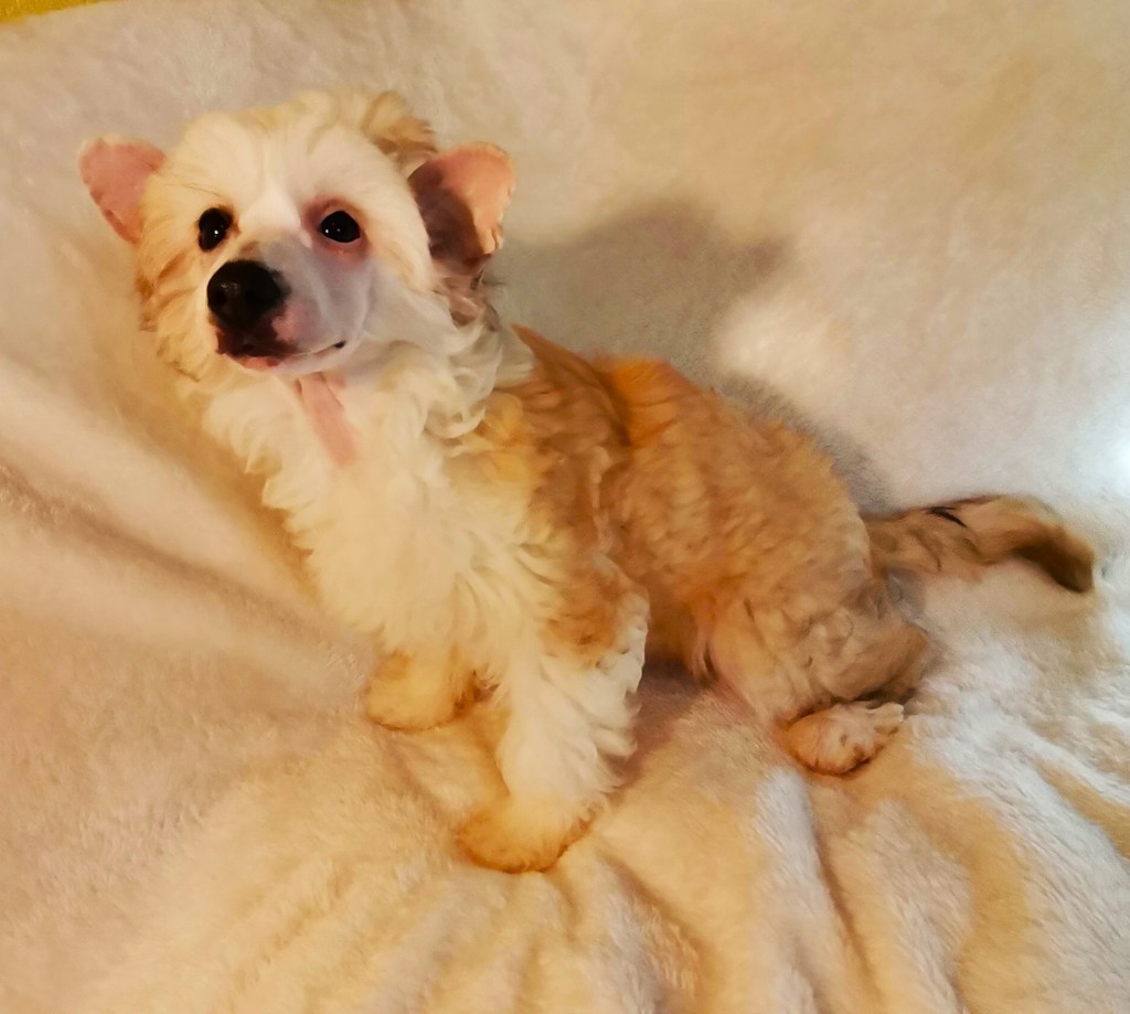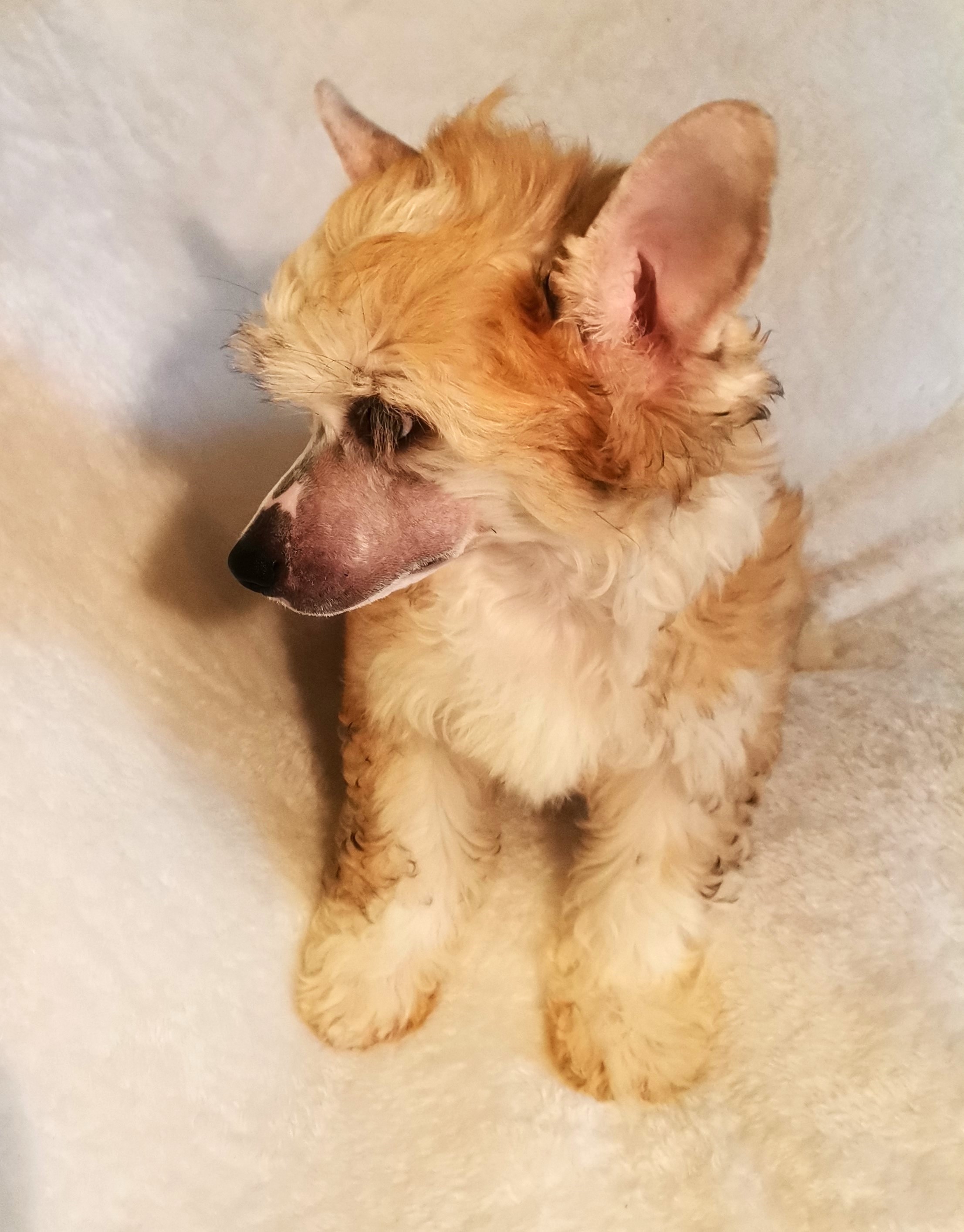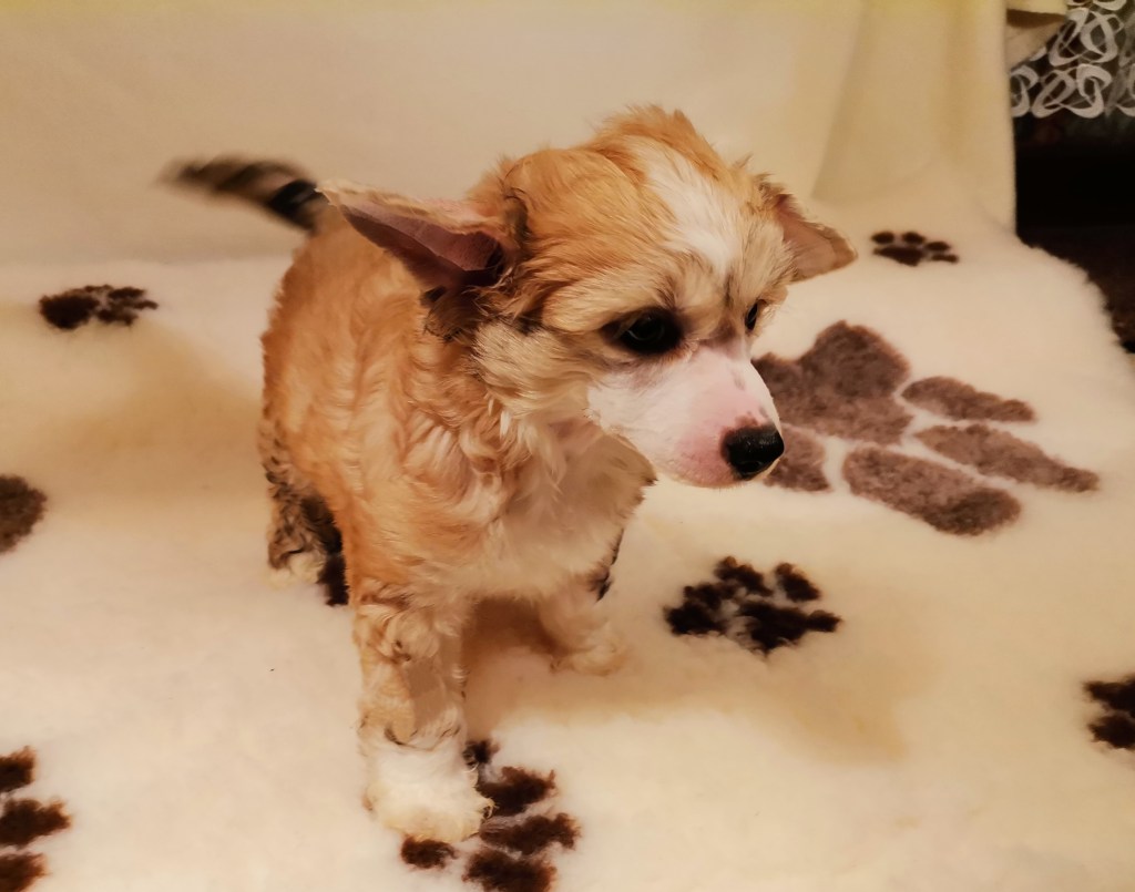 1. FINDUS kleiner Lord vom Bergschlösschen – Rüde Powderpuff Farbe: tan-weiß